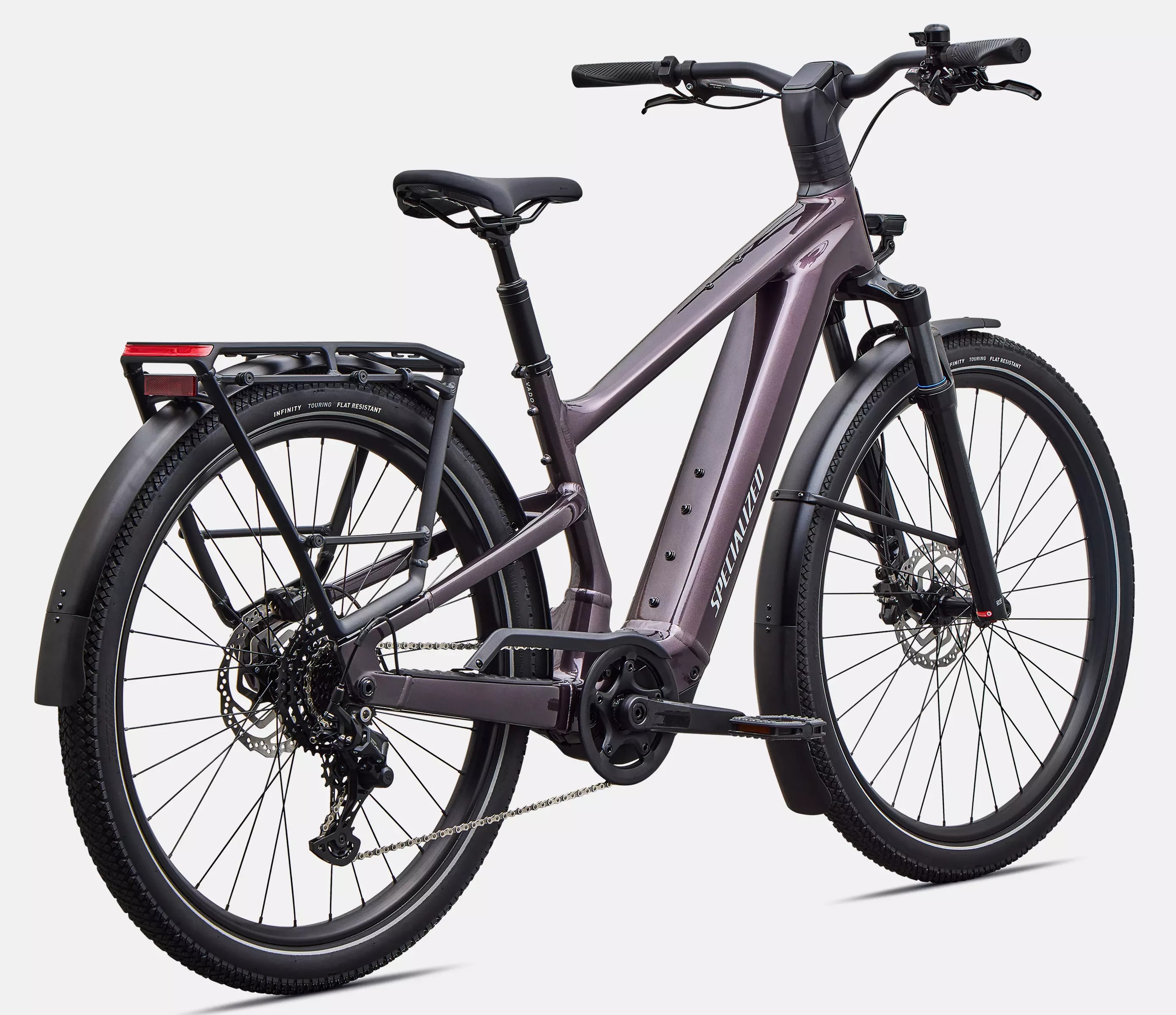 49490:-Vado 3 delivers refined performance for fast city commutes, weekend adventures, andthe effortless power that moves as naturally as you do. Pure efficiency meetsunmatched simplicity, born from Levo 4’s SuperNatural DNA, with instinctive powerand exceptional ride-anywhere range. With class-leading innovation like our digitalkeyless lock and built-in Apple Find My, Vado 3 keeps you calm, composed, and incontrol at speed. The art of arrival - perfected.Use - Full power touring e-bikeE-Bike System - Specialized 3.1 motor w/ 810 W & 105 Nm, 840 Wh Battery with up to150 km rangeTires - Touring tires: 2.3" InfinityDisplay - Customizable color displayAnti-Theft - Battery and Turbo system lock, with built-in Apple Find MyPhone Mount & Charger - USB-C port on the side of the touchscreen for easy phonecharging